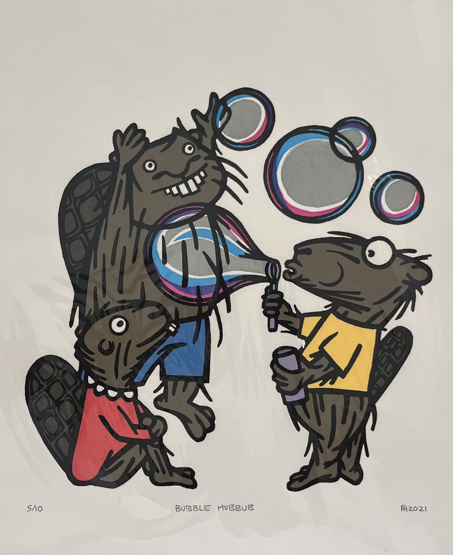 BUBBLE HUBBUB, lino cut and screenprint